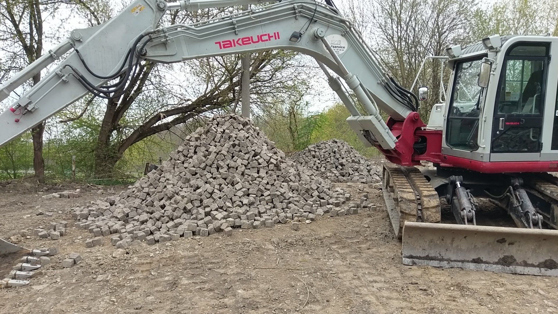 Kleinpflaster gebraucht Ausbau mit Sieblöffel