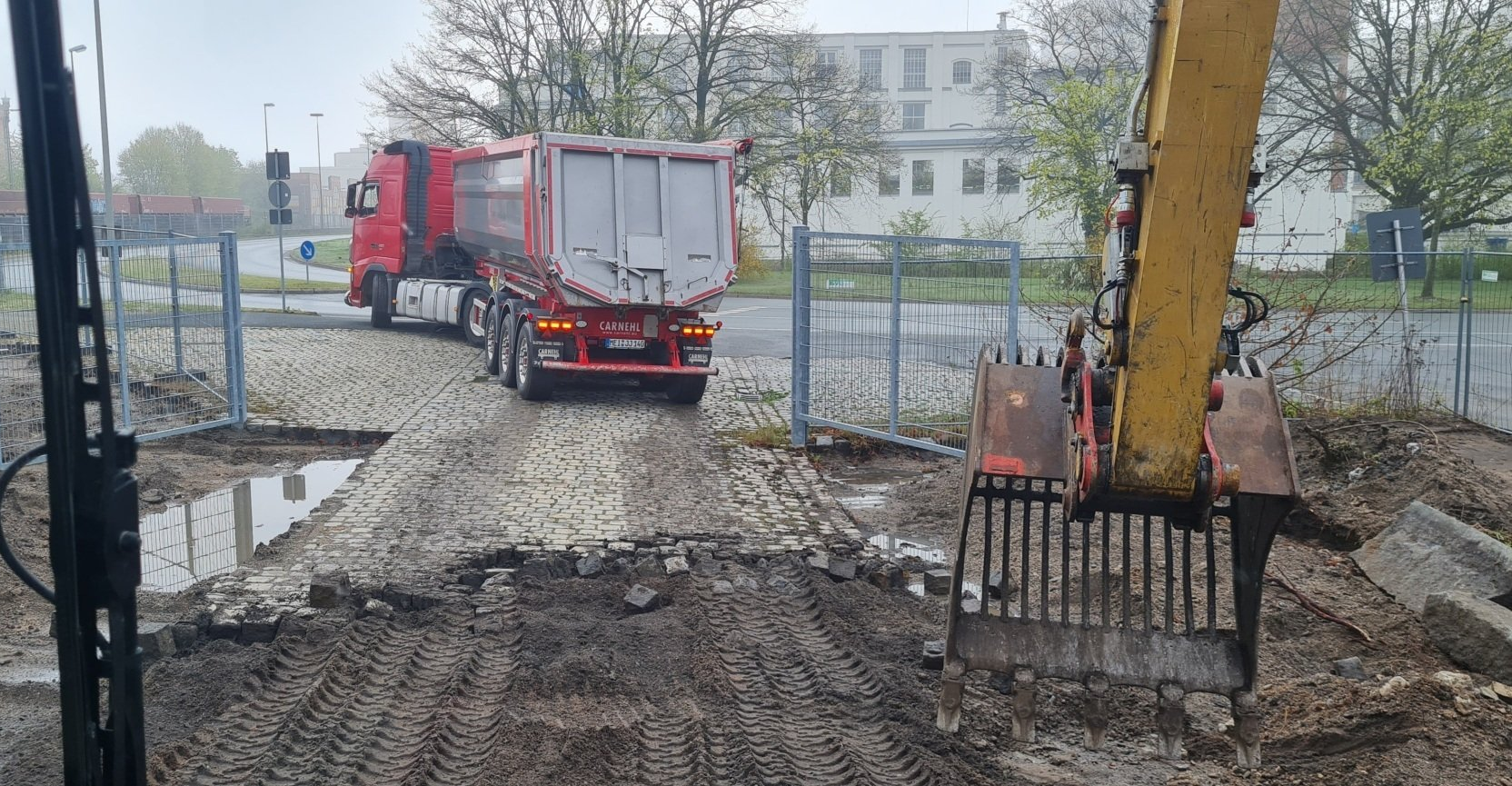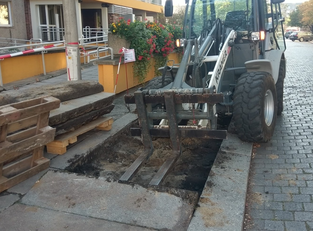 Beräumung mit Ausbau von Granit Kleinpflaster eines Betriebsgeländes *Reichenbach*