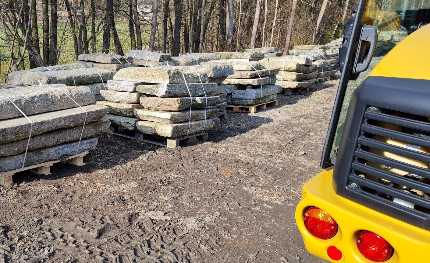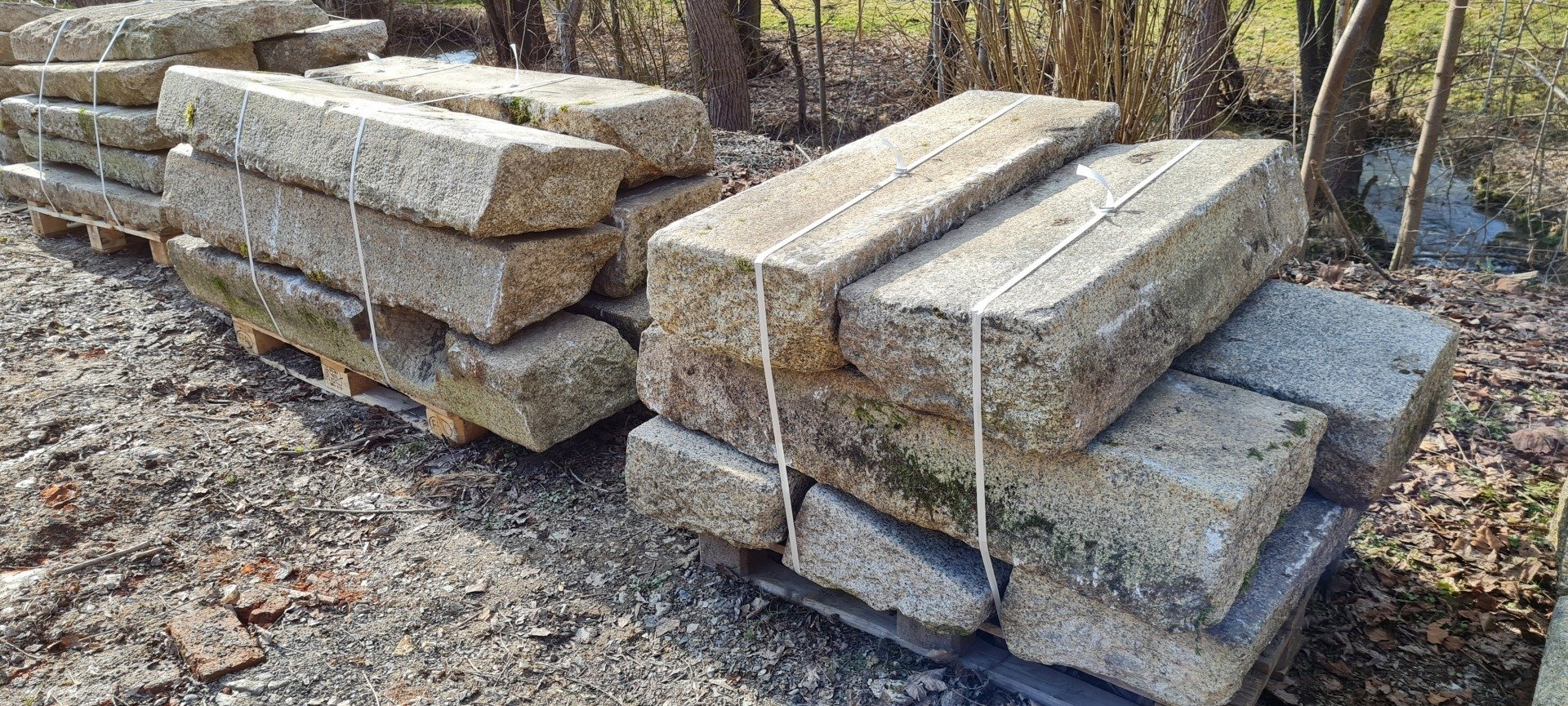 Granit Bordsteine auf Paletten bei Lagerberäumung im Vogtland