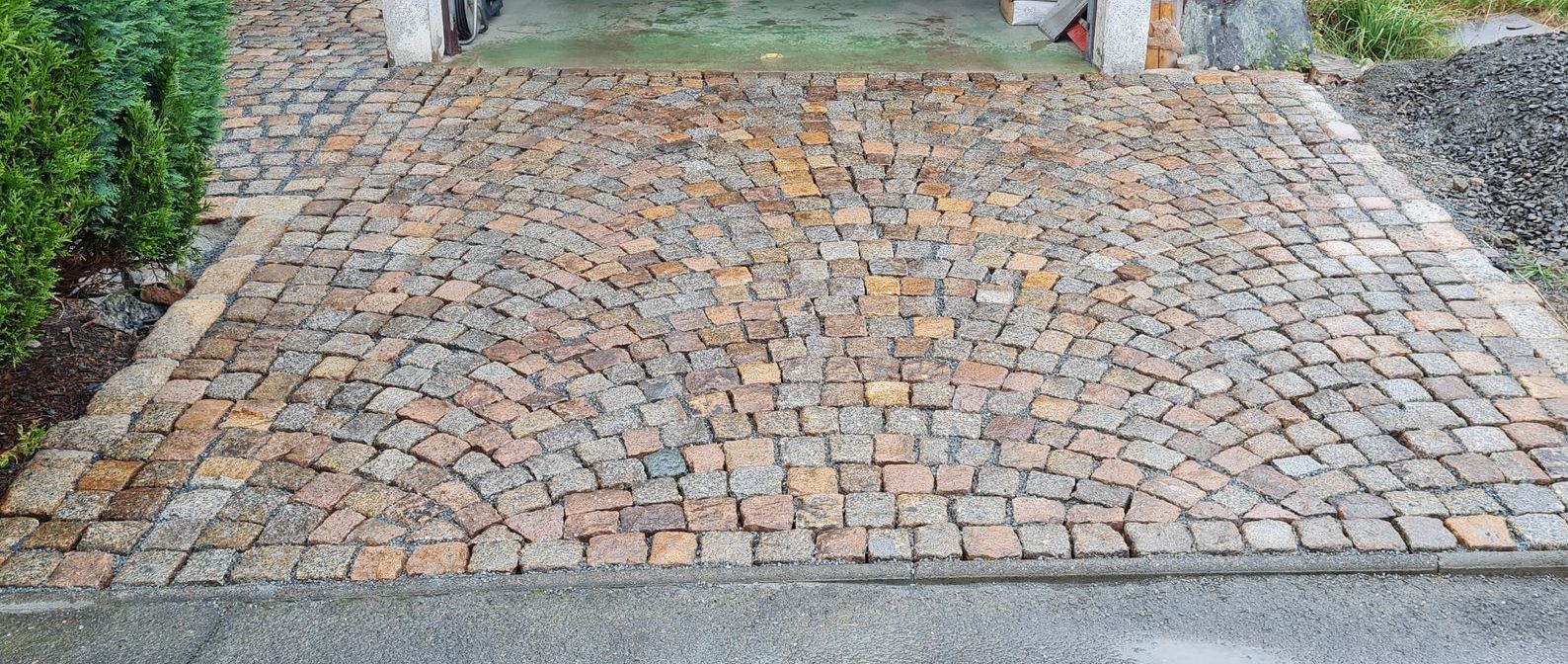 Granit Kleinpflaster bunt gemischt Garageneinfahrt Bst. Kottengrün